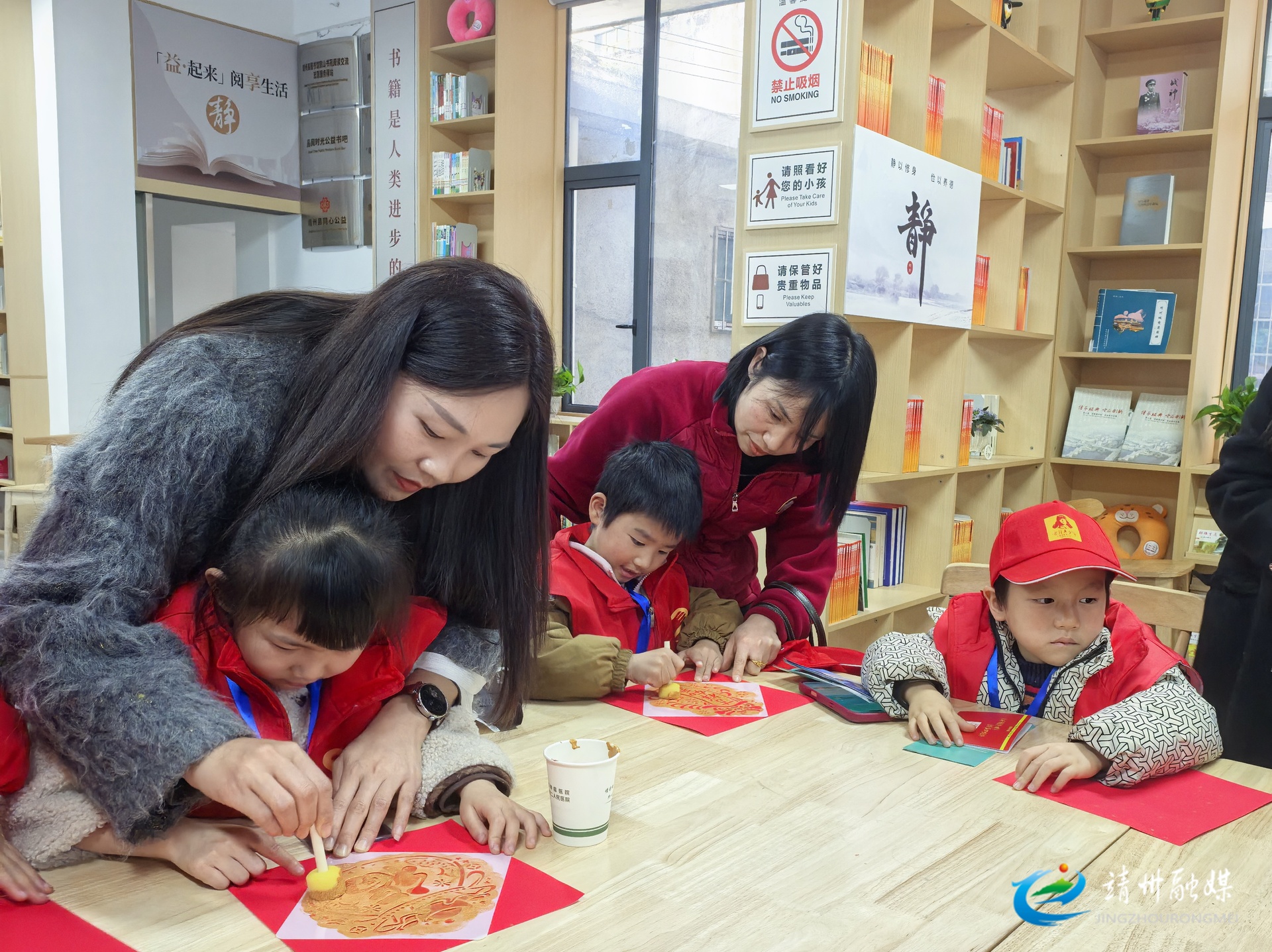 拓印环节趣味十足,青少年在志愿者协助下铺纸、蘸墨、轻压、揭纸,一张张承载新春祝福的拓印作品顺利完成,现场洋溢着欢声笑语。