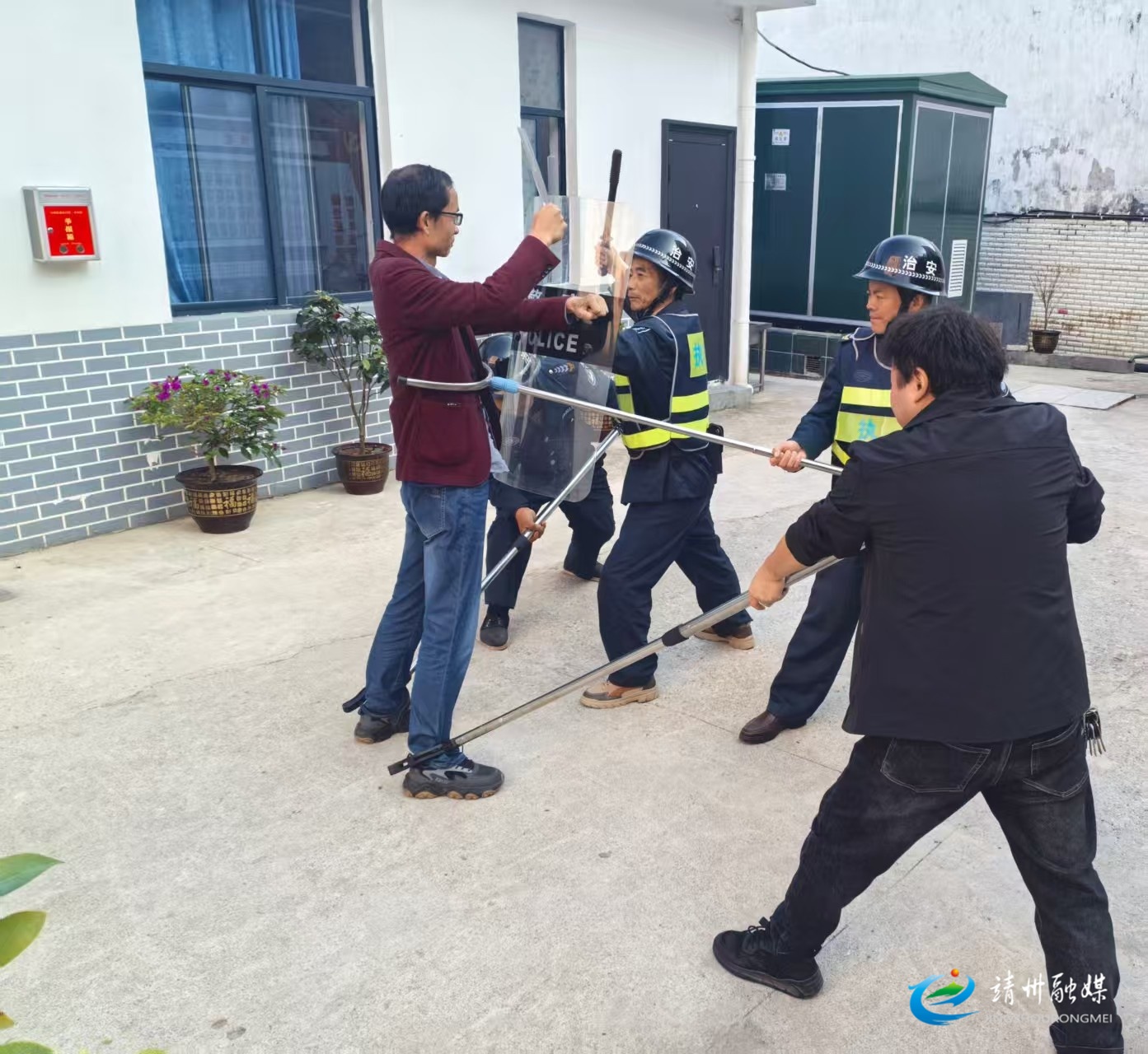 随着一阵急促的警报声响起,演练正式开始。现场模拟一名“暴恐分子”持刀欲闯校园,学校安保人员迅速持防暴盾牌、钢叉等器械周旋拦截、配合默契,最终成功控制“暴恐分子”。