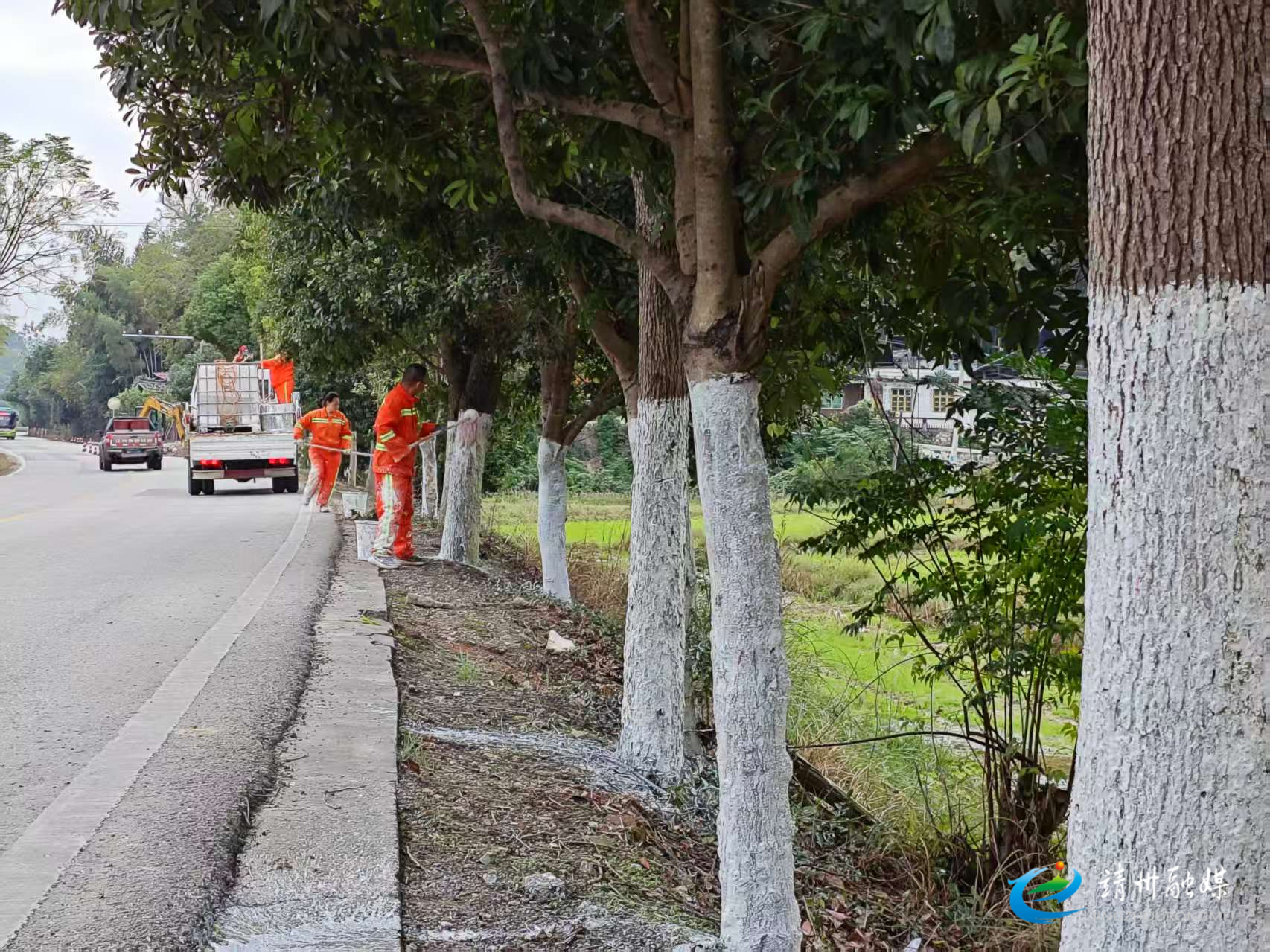 靖州融媒11月13日讯(通讯员 王静 热娜古丽·阿不都拉)11月13日,靖州苗族侗族自治县公路建设养护中心组织养护人员对辖区国省干线公路沿线行道树开展集中刷白作业,为行道树穿上“防护白装”。