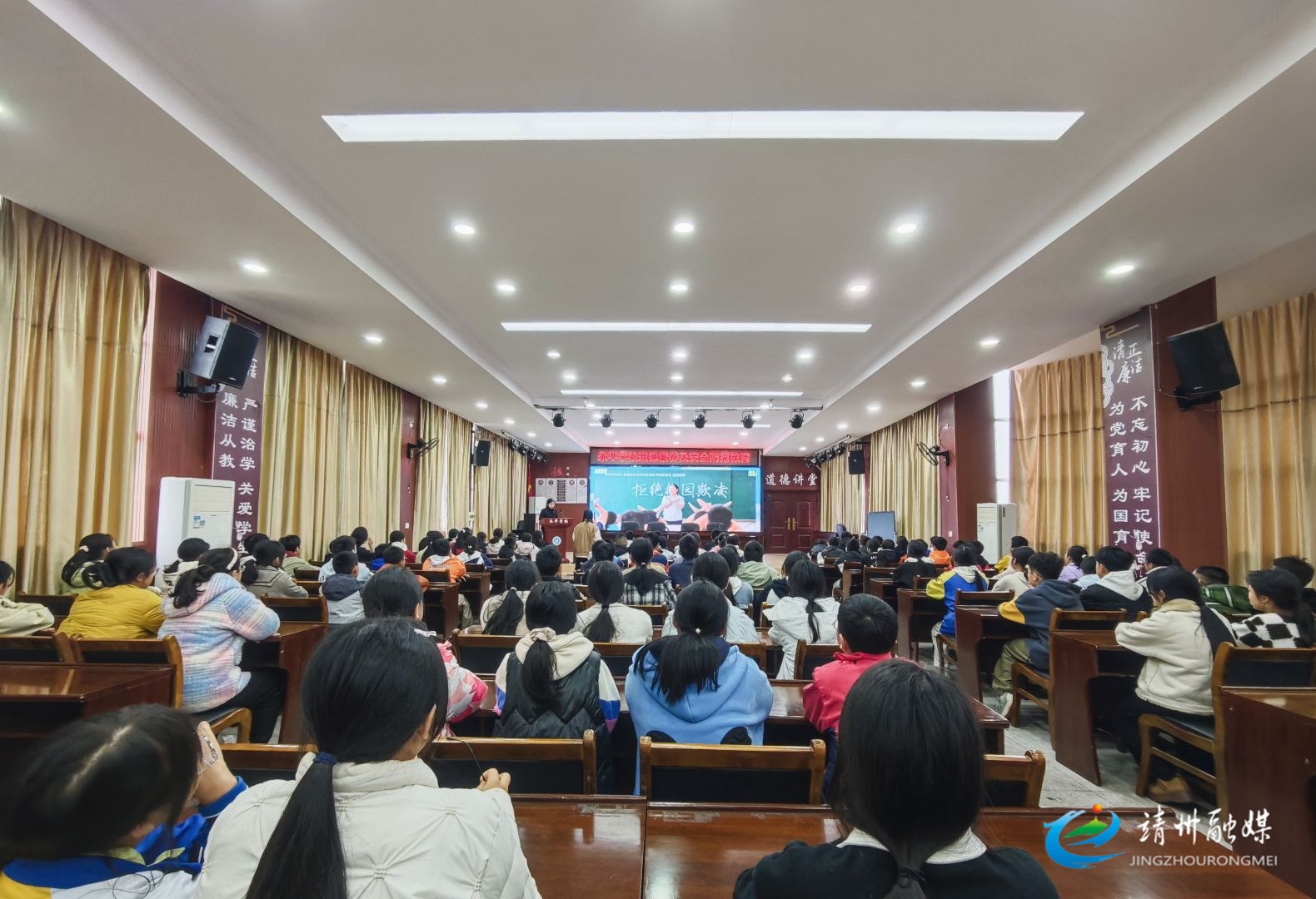 在安全防范教育宣讲现场,主讲人李梦迪以 “涵养道德素养 筑牢安全防线” 为主题,通过案例分析、互动讨论等形式,普及道德培育、安全防范知识及未成年人保护相关法律法规;法制副校长童宁那结合校园实际与典型案例,围绕交通安全、防欺凌、防诈骗、网络安全等内容开展宣讲,引导学生树立法治观念、增强自我保护意识。