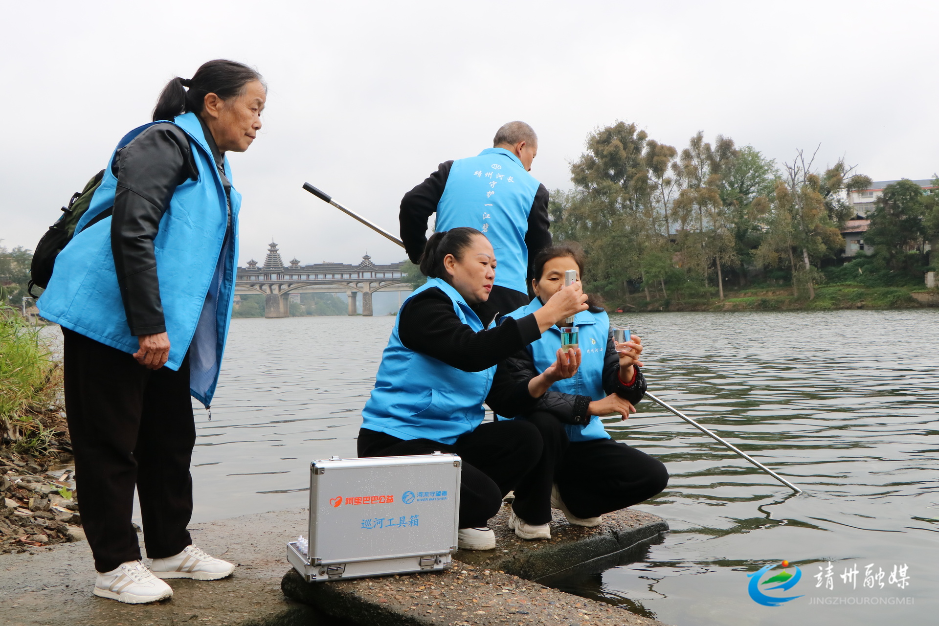 志愿者在用巡河工具箱检测水质(夏源懋 摄)