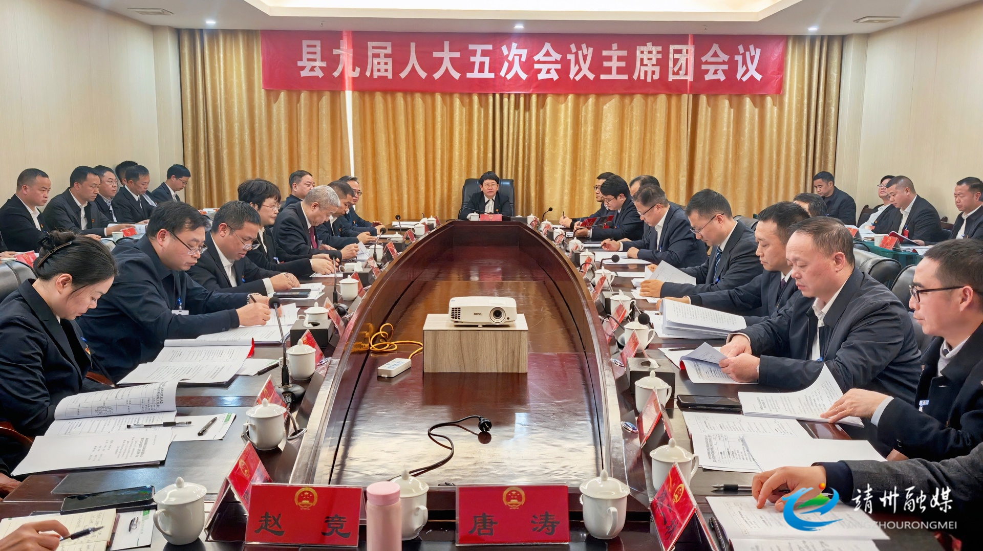 靖州融媒12月19日讯(记者 钦苏芬 蒲湘萍) 12月19日下午,靖州苗族侗族自治县第九届人民代表大会第五次会议召开主席团第一次会议,县人大常委会党组副书记、副主任贺敏化主持。
