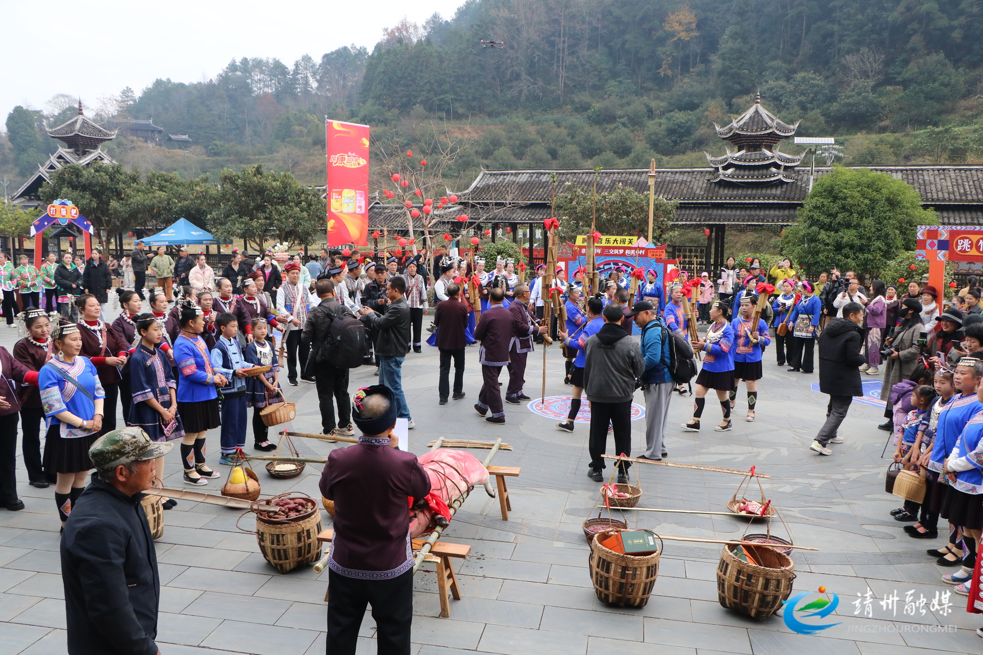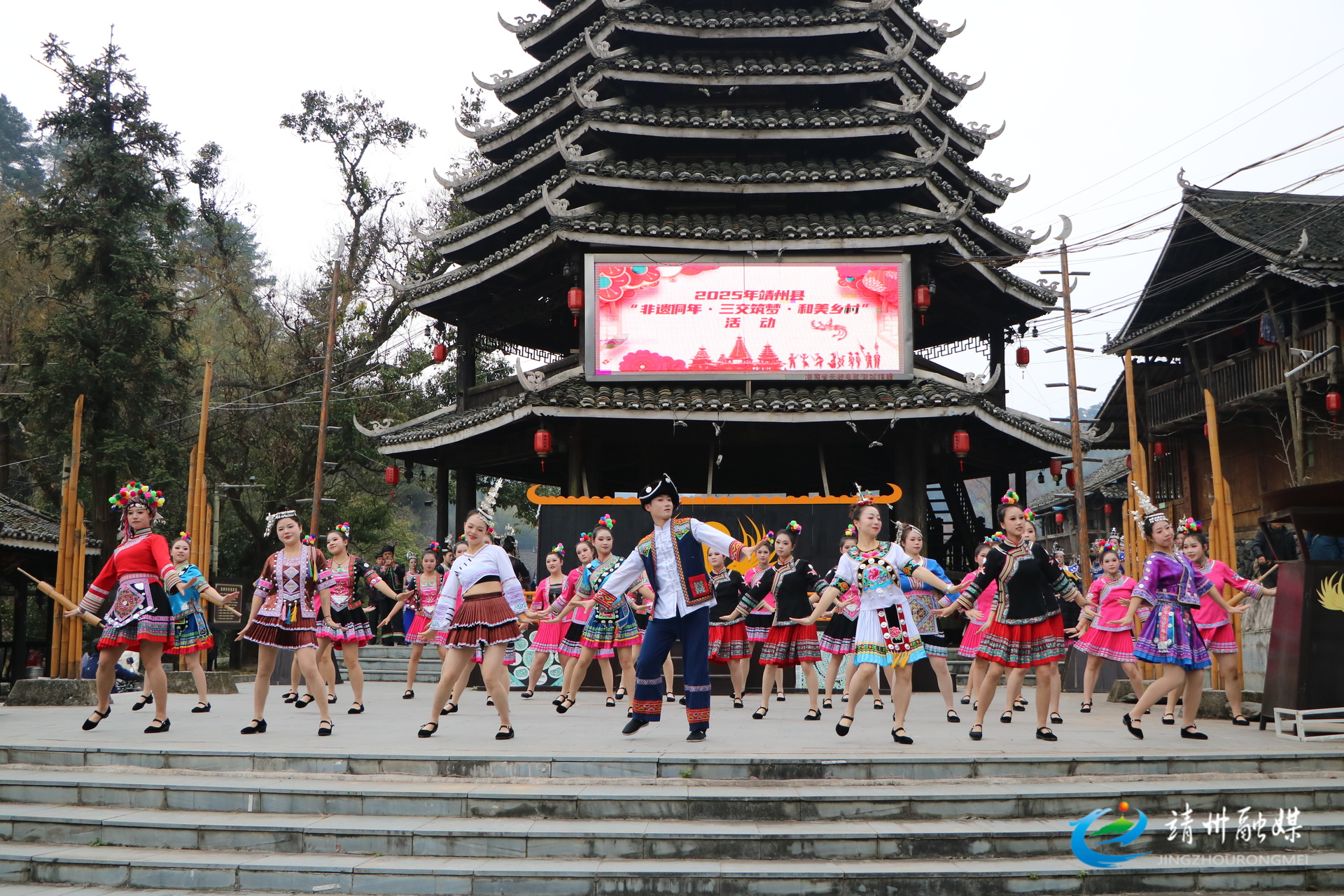 靖州融媒12月20日讯(记者 夏源懋 陈俊名 )12月20日,2025年靖州“非遗侗年·三交筑梦·和美乡村”活动在靖州苗族侗族自治县寨牙乡岩脚村举行,侗族同胞与各地游客欢聚一堂,载歌载舞,共庆侗年。