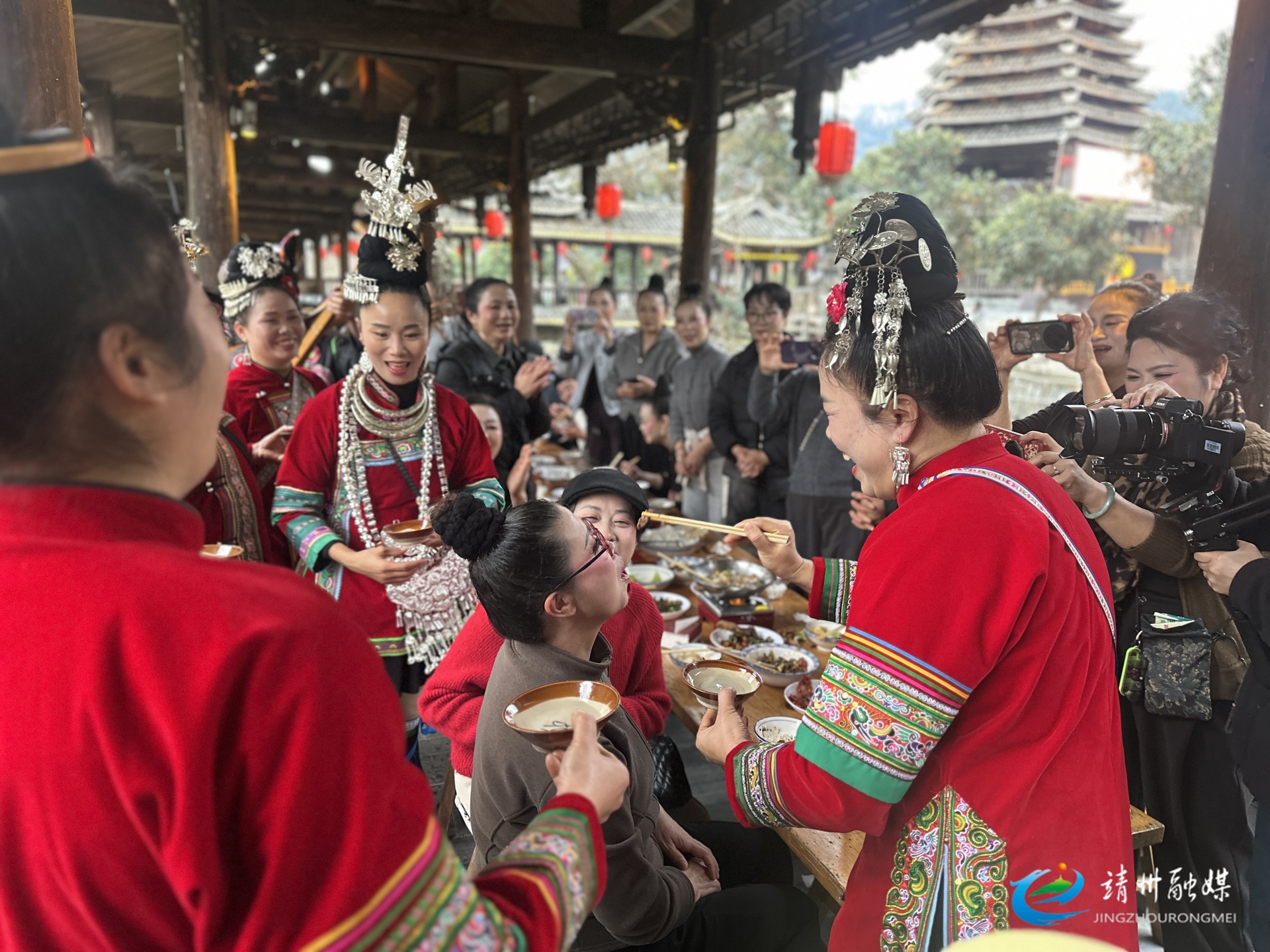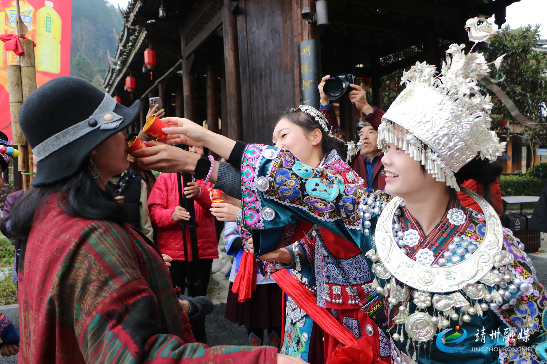 游客体验侗族拦门酒(夏源懋 摄)