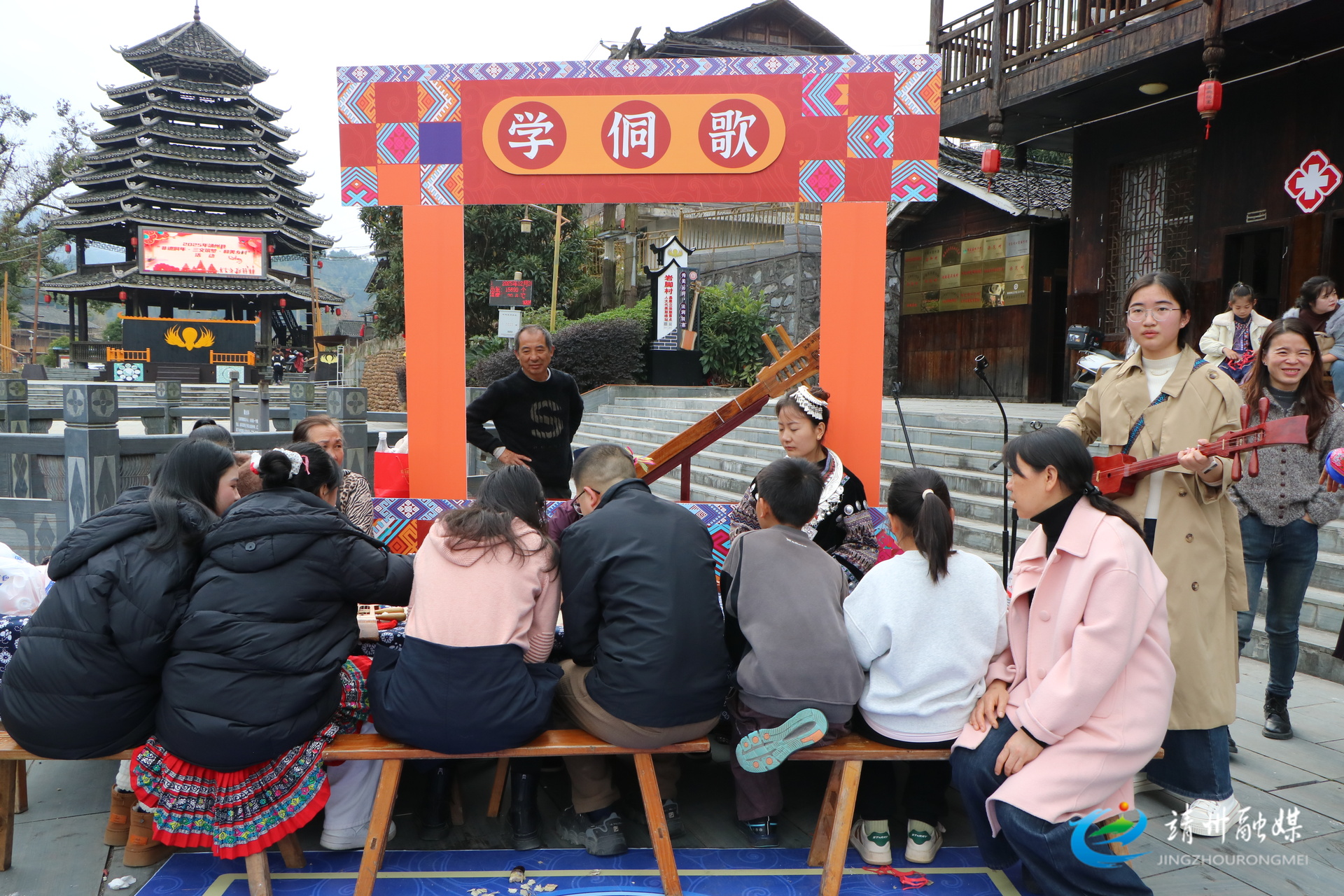 游客在学侗族歌曲(夏源懋 摄)