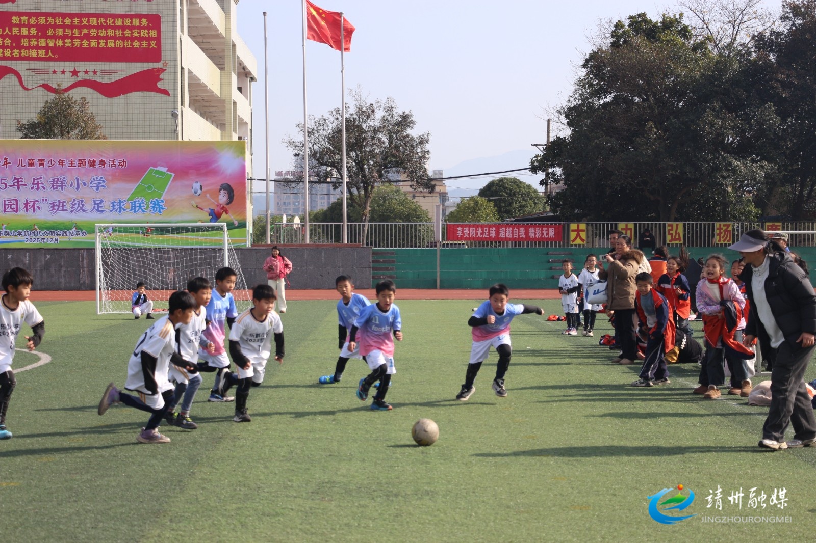 乐群小学开展第七届“校园杯”班级足球联赛。活动以“以球育德,以赛促长”为宗旨,面向三年级12支班级代表队,采用5人制赛制。赛事分为小组循环赛、淘汰赛进行,将角逐冠亚季军及“最佳射手”“最佳团队”等特色奖项。赛场上,足球小将们拼抢积极、配合默契,展现出顽强拼搏的体育精神。