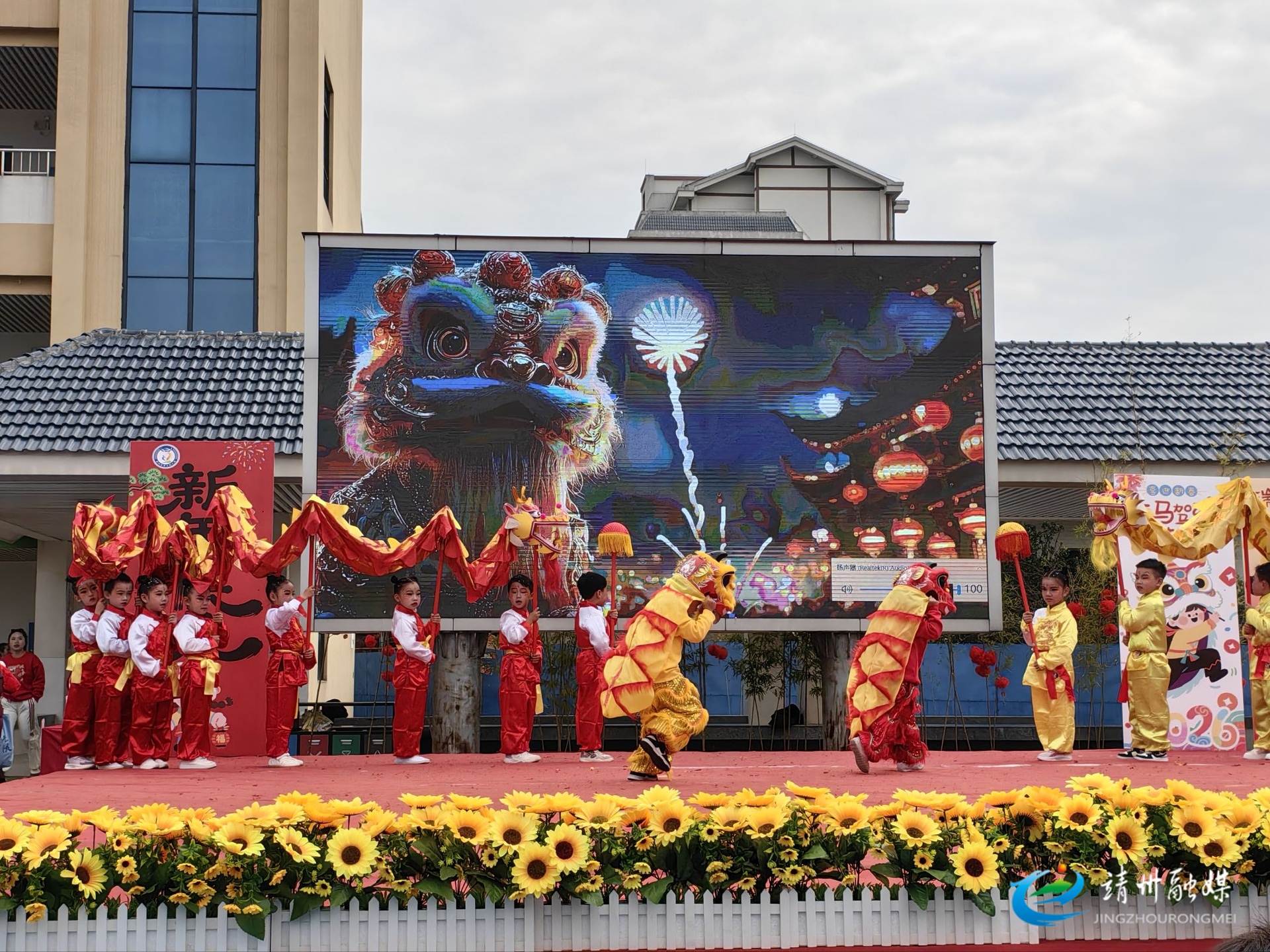 县二幼的幼儿表演醒狮舞龙节目 (李倩 摄)