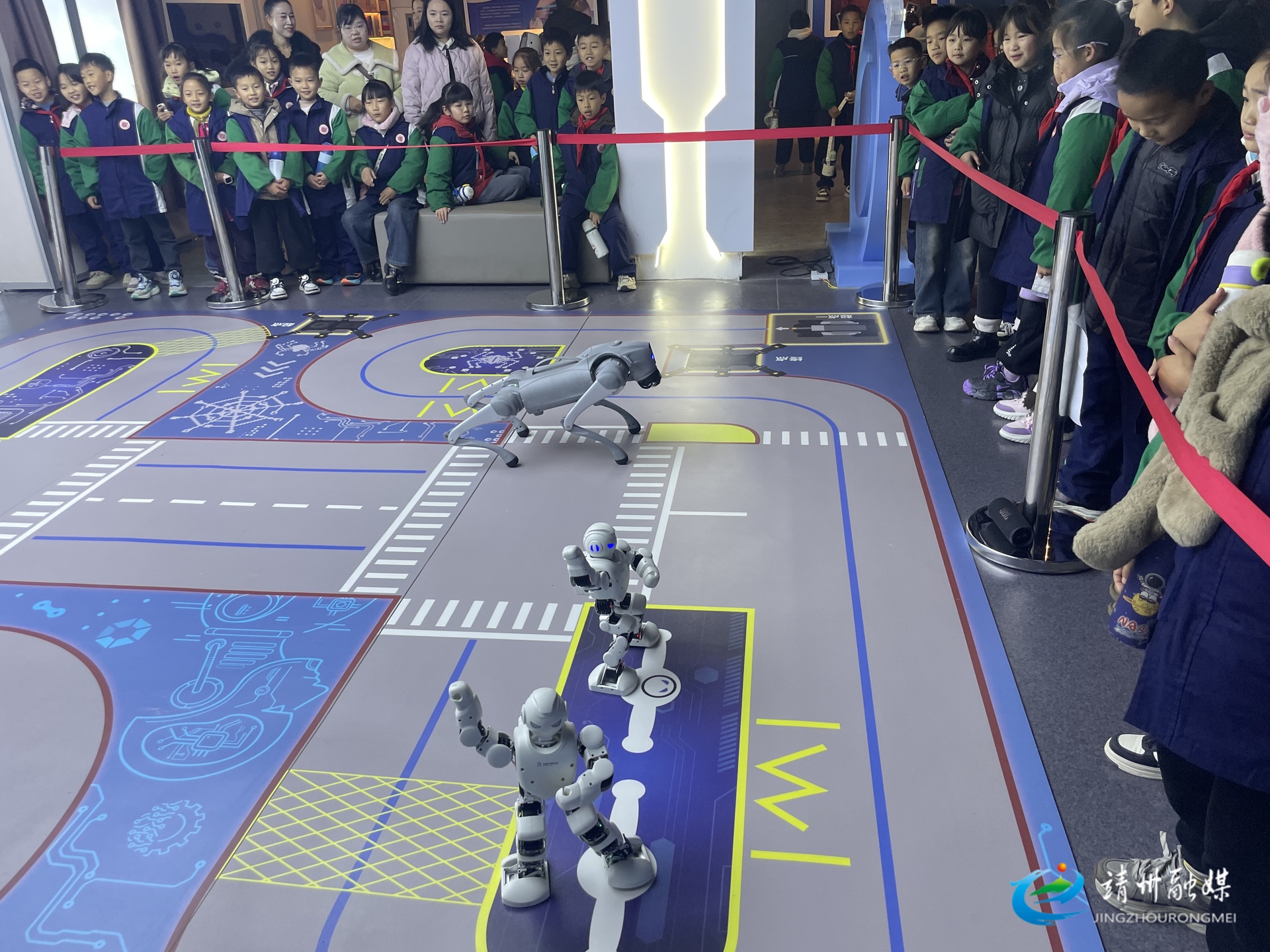 渠阳镇芙蓉学校学生近距离观看机器人表演(张敏 摄)