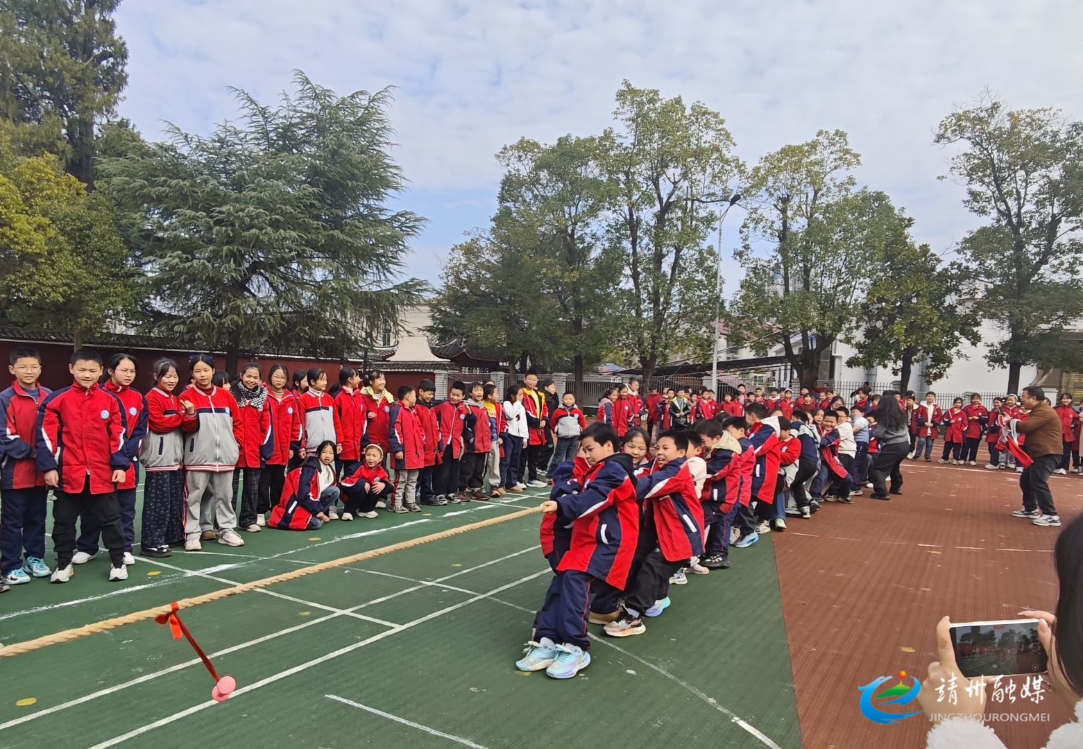 永平学校开展“奔跑吧——少年”元旦拔河比赛。各班队员凝心聚力、奋力拼搏,赛场内外,呐喊声和助威声此起彼伏。队员们以坚韧毅力诠释团结精神,师生并肩助威彰显集体风采,有效凝聚了班级向心力与集体荣誉感。