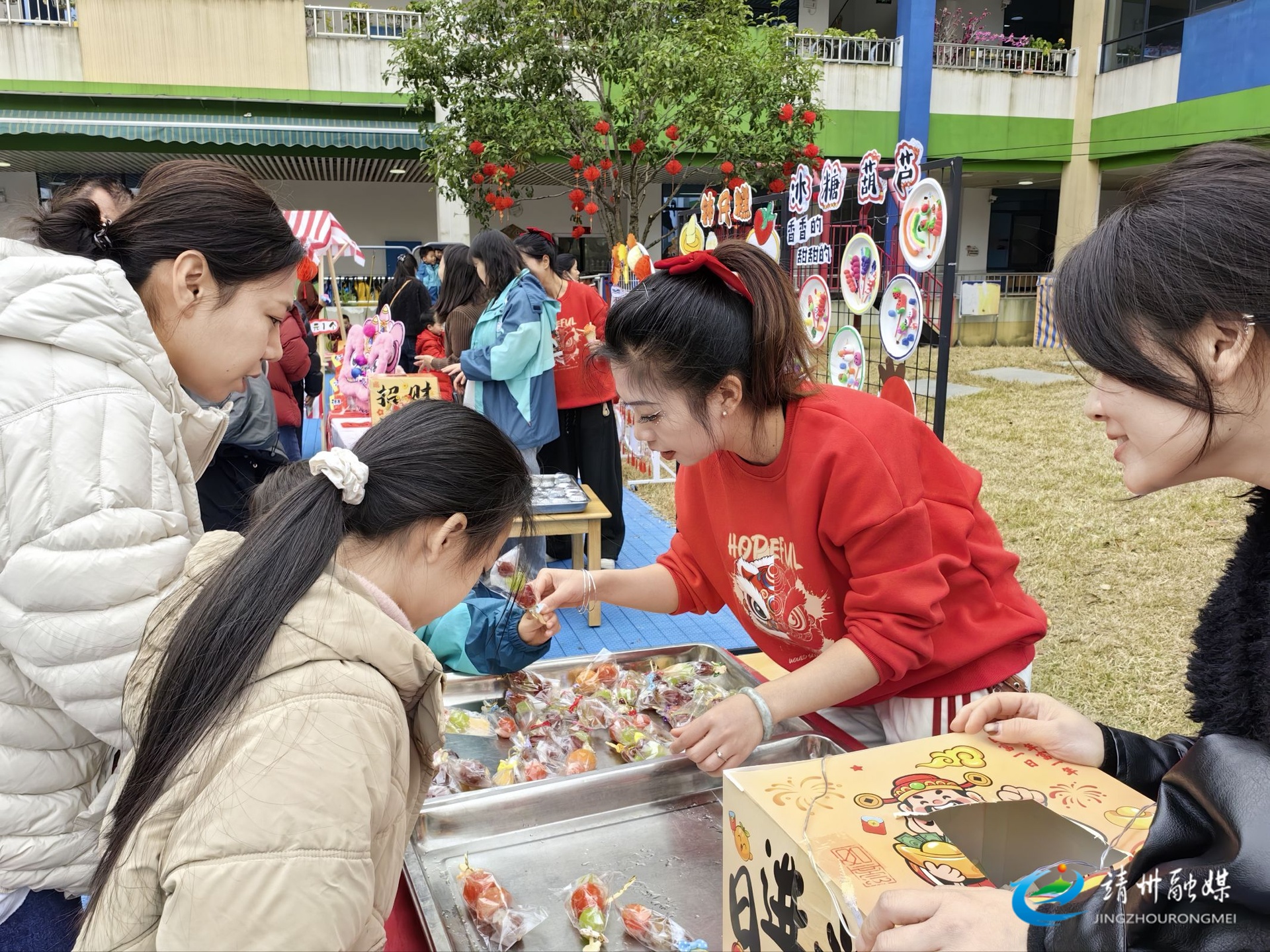 县二幼家长在购买冰糖葫芦(李倩 摄)