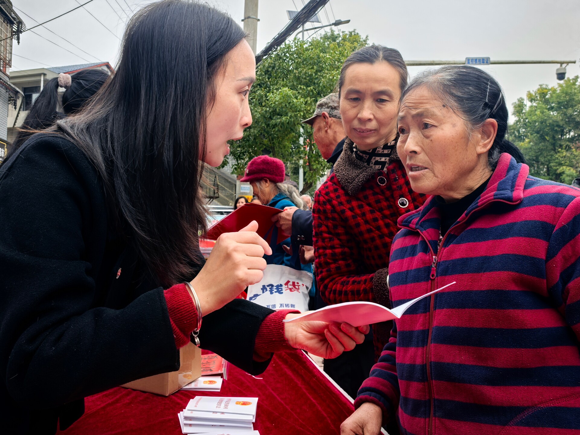 工作人员向群众普及相关法律知识(周悦伊 摄)