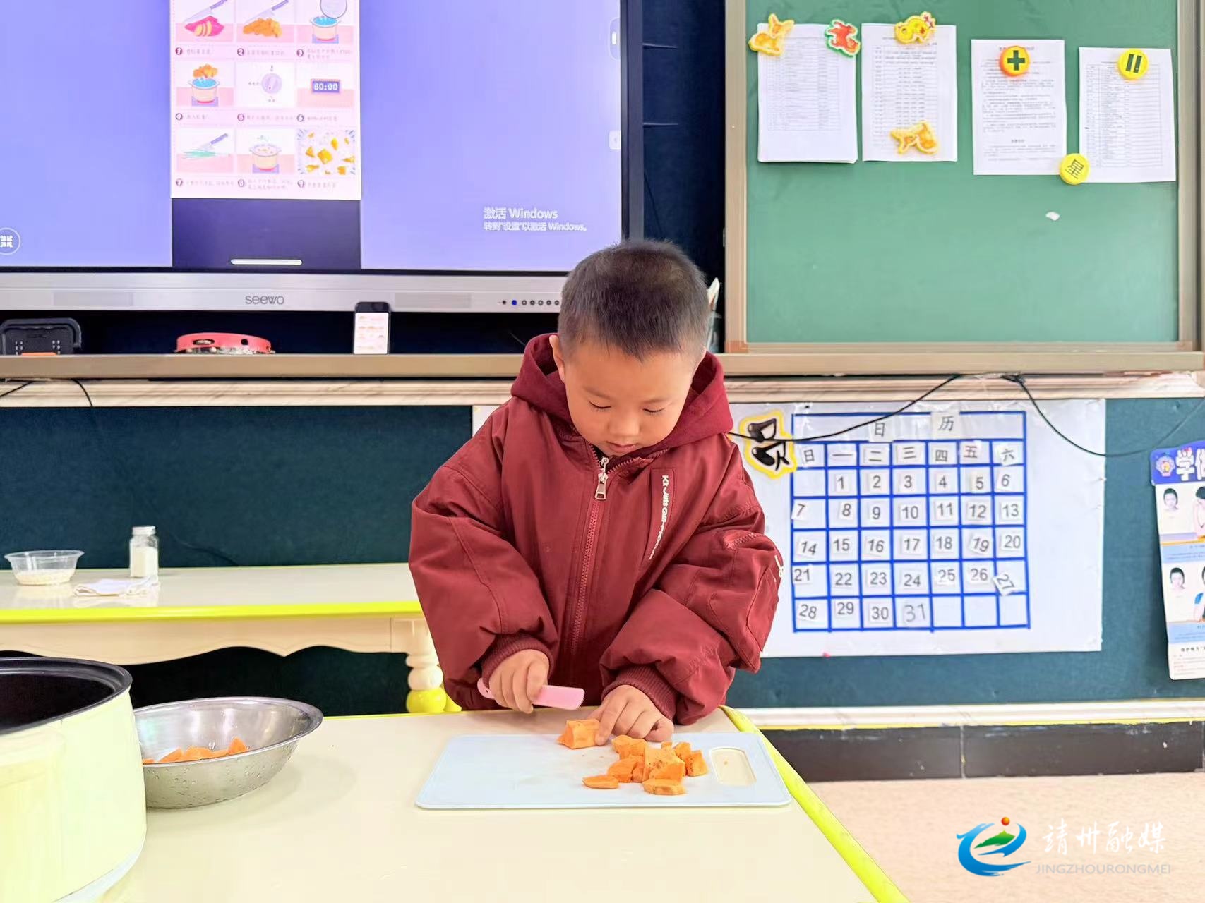 活动中,教师依据幼儿年龄与认知特点,借助生动的视频及图片讲解大雪节气习俗,引导幼儿初步认识该节气特点及其与天气、动植物的关联。随后进行的食育课程中,幼儿们化身“小小厨师”,在教师的指导下制作红薯粥,煮出的红薯粥软糯香甜,幼儿们品尝着自己的劳动成果,脸上洋溢着满满的成就感。