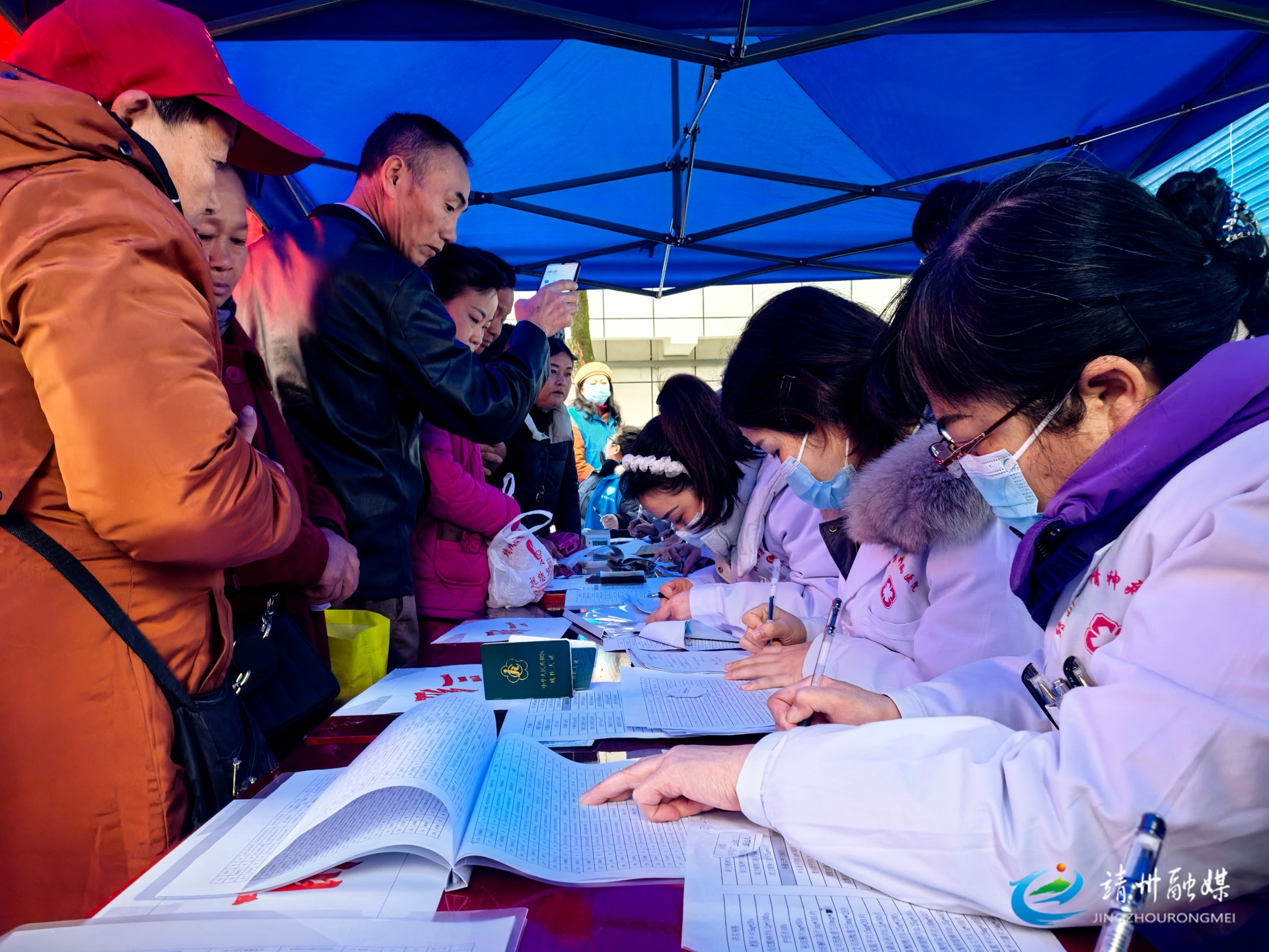 医护人员认真登记相关资料(周悦伊 摄)